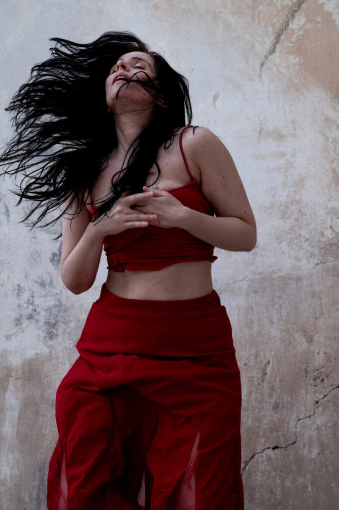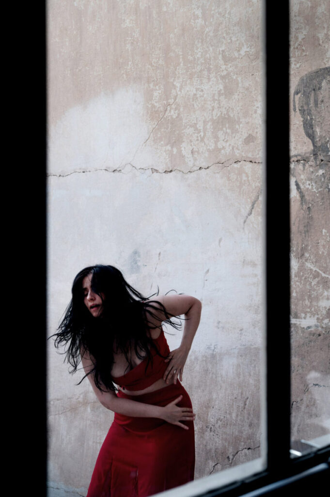 Η περφόρμερ μετατοπίζεται ανάμεσα σε ταυτότητες και γλώσσες (ελληνικά, ισπανικά, γαλλικά, γερμανικά), με τη φωνή της να σπάει σε ποίηση, τραγούδι, κραυγή και σιωπή.