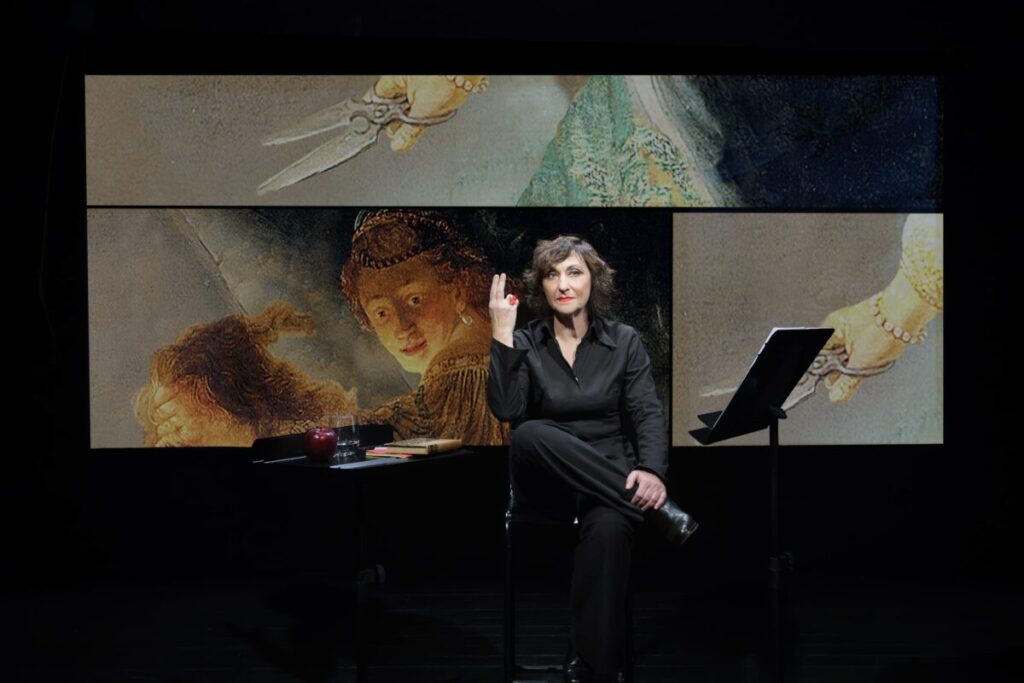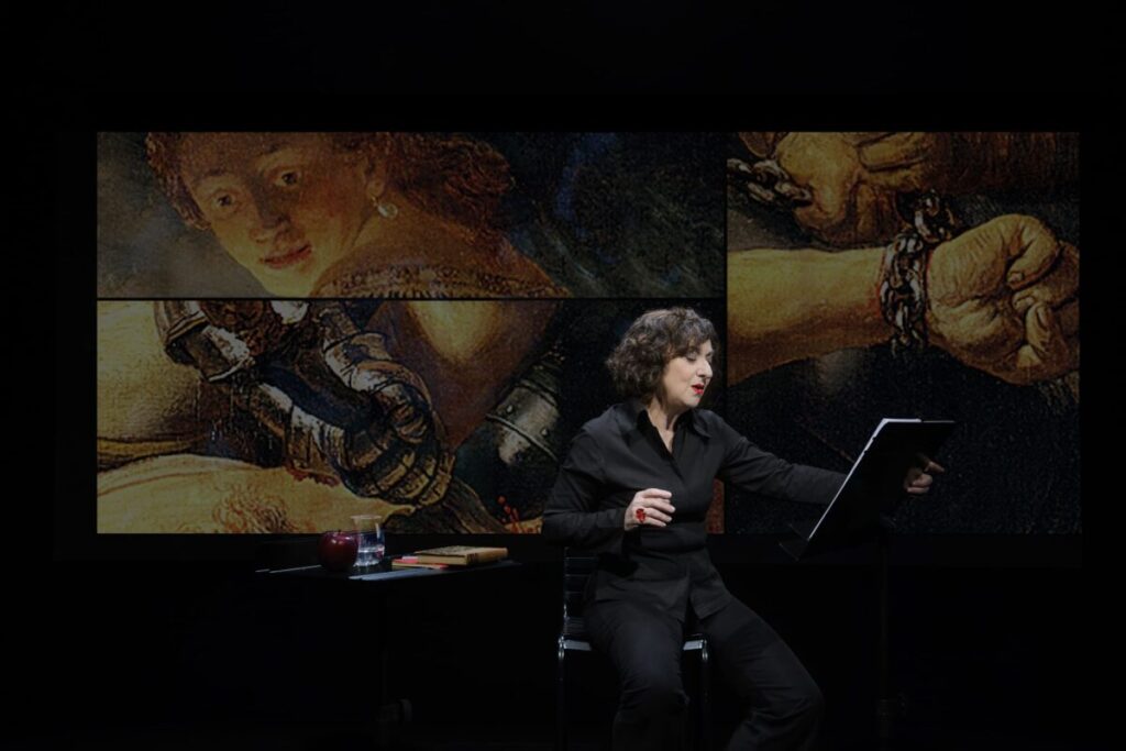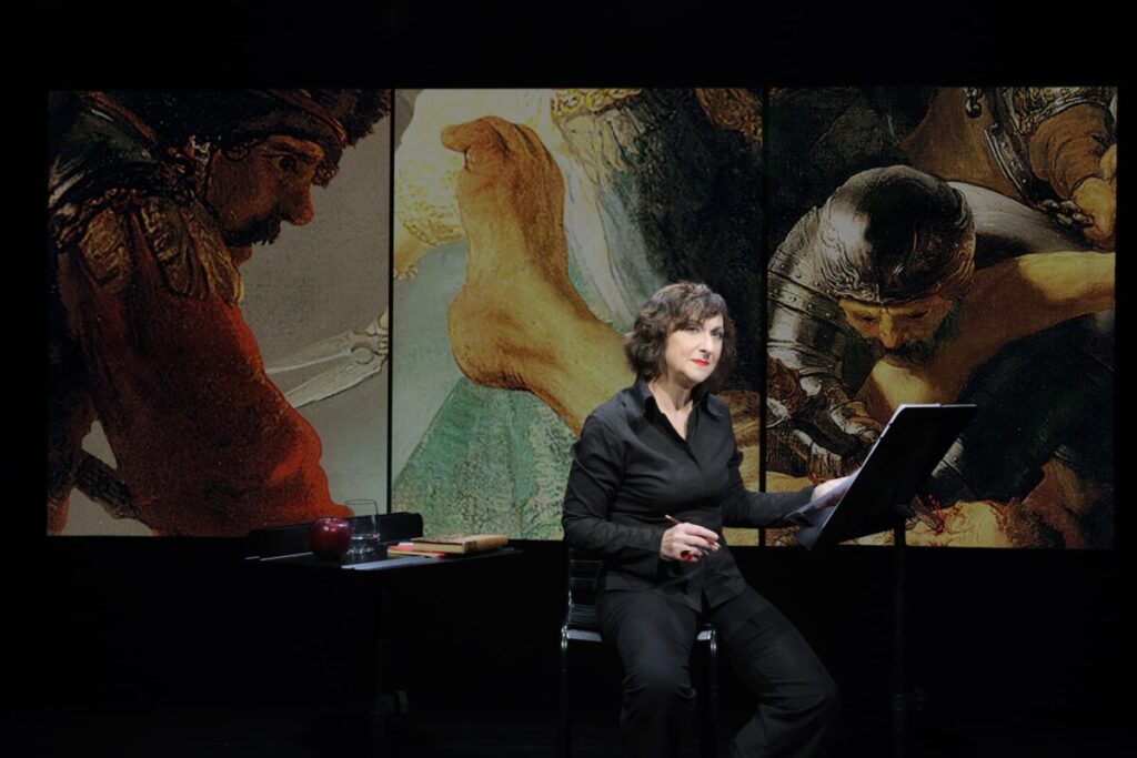 Ο Σέρχιο Μπλάνκο στέκεται μπροστά στον εμβληματικό πίνακα του Ρέμπραντ Η τύφλωση του Σαμψών από τους Φιλισταίους και ξεκινάει μια διάλεξη περί βίας. Η εισήγησή του είναι τολμηρή και κινείται μεταξύ ακαδημαϊκότητας και βιώματος, χωρίς να διακρίνεται με σαφήνεια η πραγματικότητα από τη φαντασία, η προσωπική αλήθεια από το ψέμα, το ψέμα από την εξομολόγηση. Ταυτόχρονα, ο συγγραφέας διερευνά τη βία της λογοτεχνίας: μια βία που τον έχει σημαδέψει ως πόνος, αλλά και συνεπάρει ως απόλαυση.