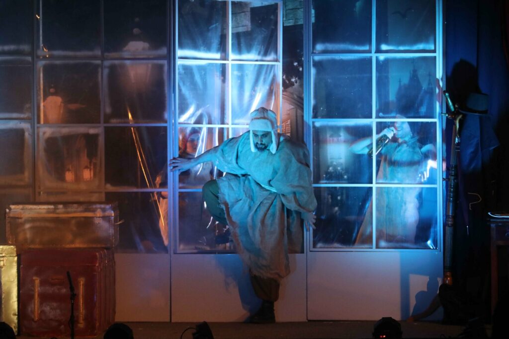 Την παραμονή των Χριστουγέννων τον επισκέπτεται το φάντασμα του παλιού συνεταίρου του Τζέικομπ Μάρλευ Την επίσκεψη αυτή θα ακολουθήσουν κι άλλοι παράξενοι επισκέπτες, τα τρία πνεύματα των Χριστουγέννων, που θα του δείξουν την αλήθεια και τα λάθη του και τον ταξιδεύουν στο παρελθόν, στο παρόν στο μέλλον του…. .Ένα μοναδικό γιορτινό και λαμπερό θέαμα που μαγεύει τις καρδιές μικρών και μεγάλων, μας στέλνει το μήνυμα της χαράς της γενναιοδωρίας, της προσφοράς και καλεί τους ανθρώπους να έχουν στην καρδιά τους τα Χριστούγεννα 365 μέρες τον χρόνο. Δεκαμελής θίασος γνωστών, καταξιωμένων αλλά και νέων εξαιρετικά ταλαντούχων ηθοποιών, ερμηνεύουν τους είκοσι ρόλους του έργου με παραμυθένια κοστούμια εποχής. Το φαντασμαγορικό θέαμα συμπληρώνεται με μαγικές μουσικές και εντυπωσιακές ειδικές κατασκευές.
