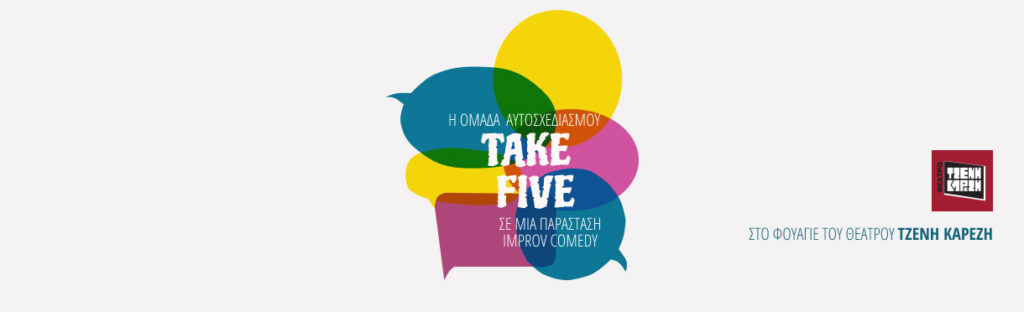 Η παράσταση των Take Five θα δημιουργηθεί με βάση τις ιδέες του κοινού και κανείς μας δεν ξέρει τι πρόκειται να συμβεί πέρα από ότι θα γελάτε για 2 ώρες.