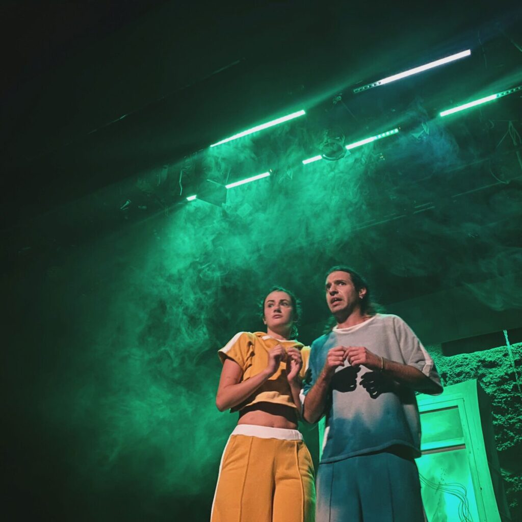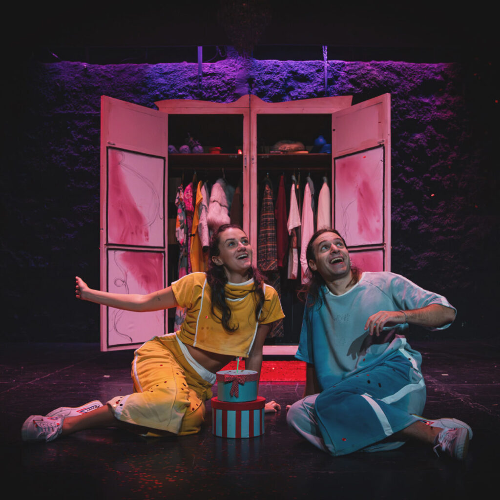 Μνήμες, εμπειρίες και καλλιτεχνικά έργα –από ποιητικές ταινίες και βιβλία προσχολικής ηλικίας έως μουσική και χορό– αποτέλεσαν βασικά υλικά της δημιουργίας. Κοινό τους γνώρισμα ο ρυθμός, η αφαίρεση και η προσπάθεια ανακάλυψης μιας εναλλακτικής πραγματικότητας που είναι αδύνατη στην καθημερινή ζωή. Γι’ αυτό, αντιμετώπισα ολόκληρη την παράσταση σαν μια χορογραφία· καταιγιστική δράση, εναλλαγές κωμικών και ονειρικών στιγμών, παλλόμενο μουσικό περιβάλλον, που έπλασε με ευαισθησία ο Παναγιώτης Μανουηλίδης, κι ένα αργό ξεδίπλωμα των αισθήσεων που φέρνουν με γενναιοδωρία και χάρη στη σκηνή η Αγγελική Δεληθανάση και ο Σταμάτης Φακορέλλης, πλαισιώνοντας το αφαιρετικό και παιχνιδιάρικο κείμενο.