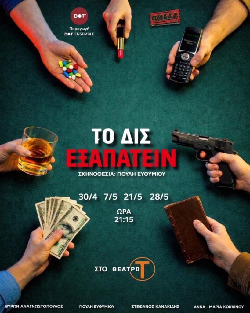 Η ΟΜΑΔΑ, η νέα δημιουργική προσπάθεια από τη Θεσσαλονίκη, σε συνεργασία με την DOT Ensemble παρουσιάζει «Το δις εξαπατείν», μια πρωτότυπη παράσταση που ισορροπεί ανάμεσα στην αστυνομική κωμωδία και το ψυχολογικό θρίλερ, αντλώντας έμπνευση από τη σύγχρονη επικαιρότητα.