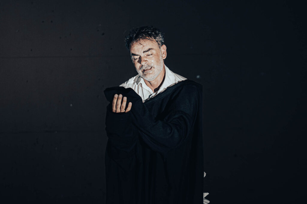 Η παράσταση φωτίζει την υπαρξιακή αγωνία του ήρωα µε τα εργαλεία του σύγχρονου θεάτρου: ηλεκτρονική μουσική, διαρκή κίνηση, έντονο ρυθμό , ηχητικά τοπία και το φως δυνατό συμπαίκτη . Στοιχεία που αναδεικνύουν το μεγάλο ερώτημα της αναζήτησης του νοήματος της ύπαρξης .
