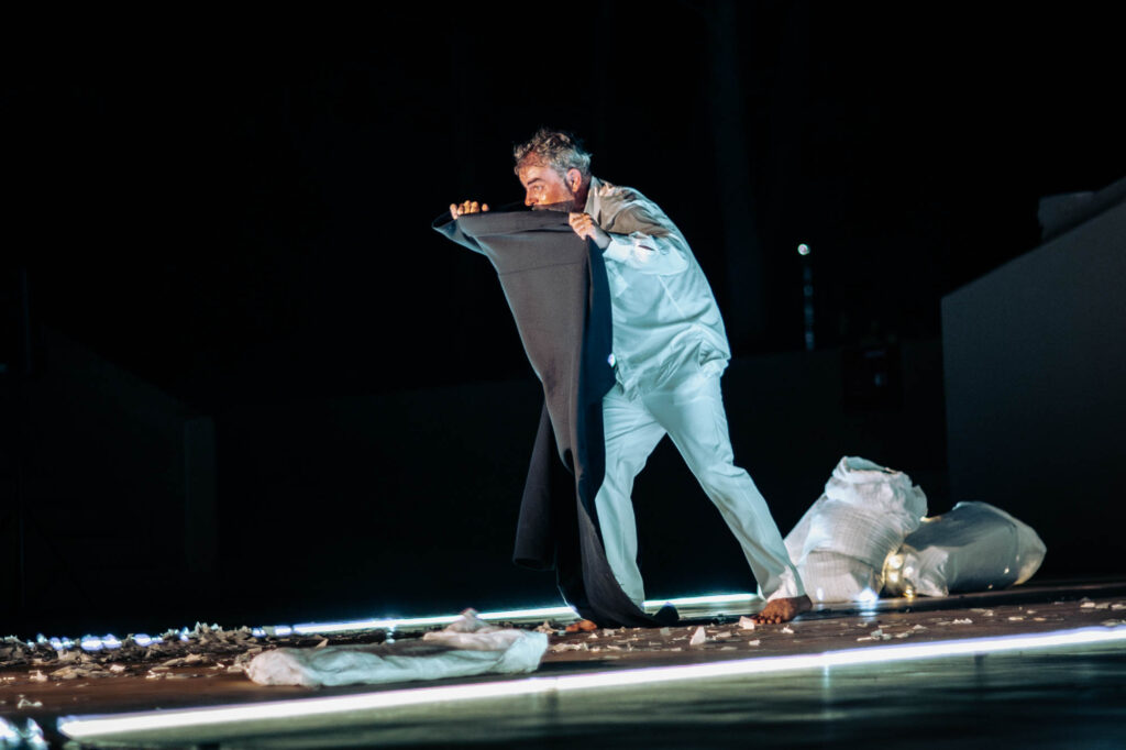 Το σώμα του ηθοποιού γίνεται η γλώσσα του. Τα φώτα ο καμβάς της µνήμης. Οι ήχοι είναι ο παλμός. Ένας κόσμος που θρυµµατίζεται και αναγεννιέται διαρκώς.