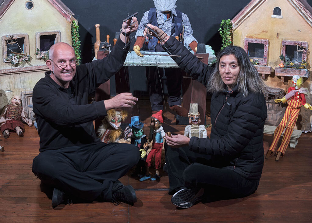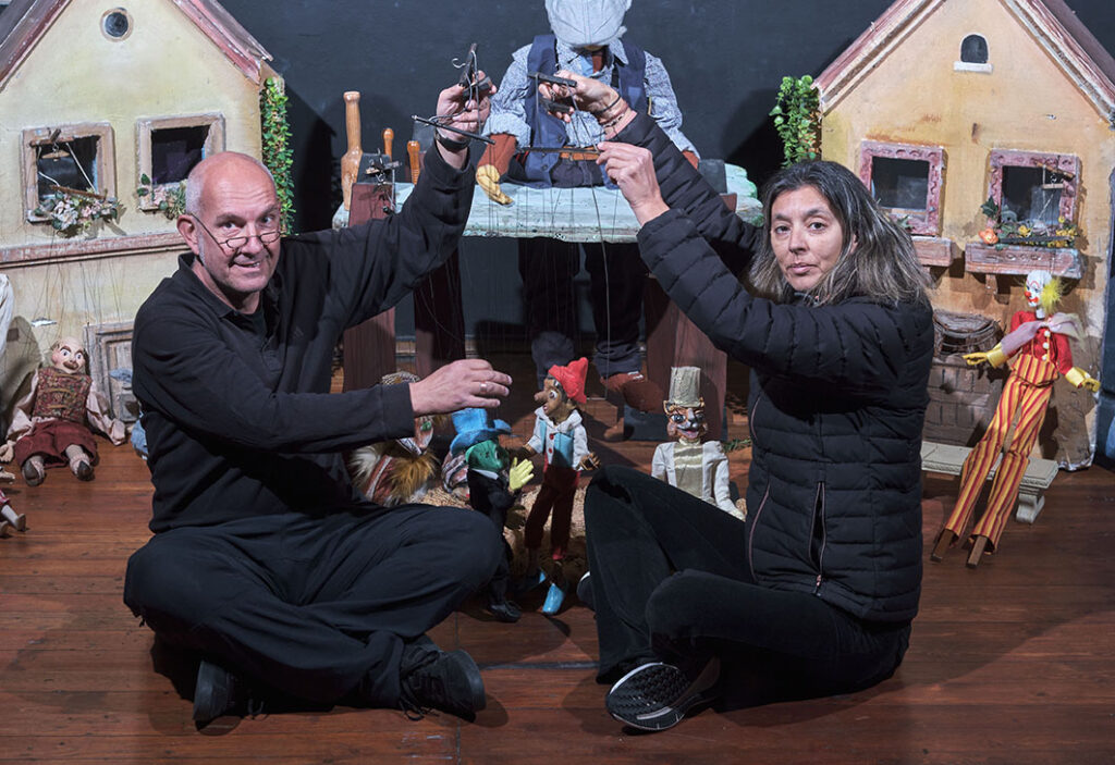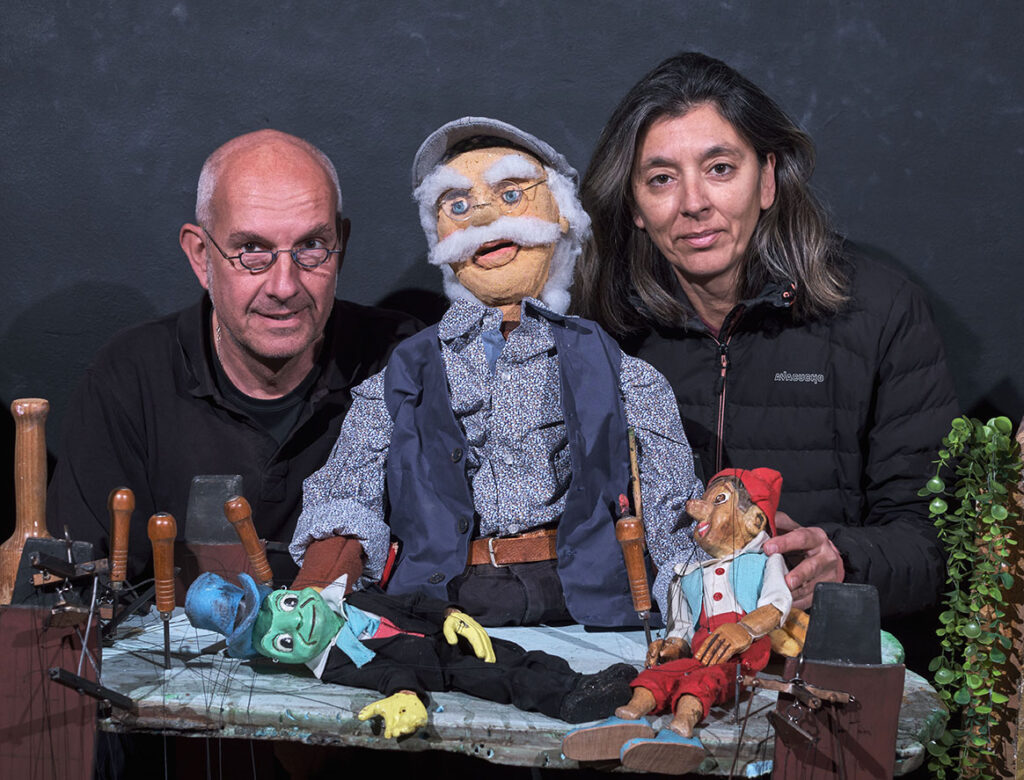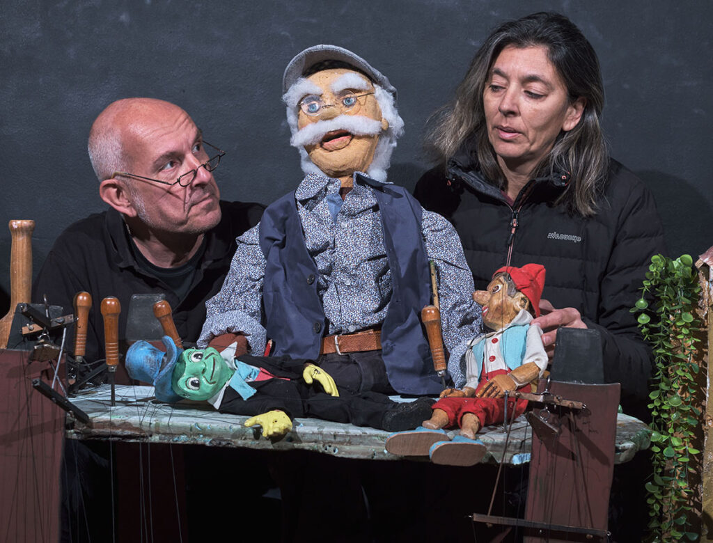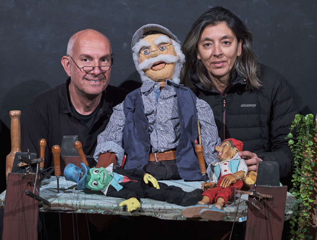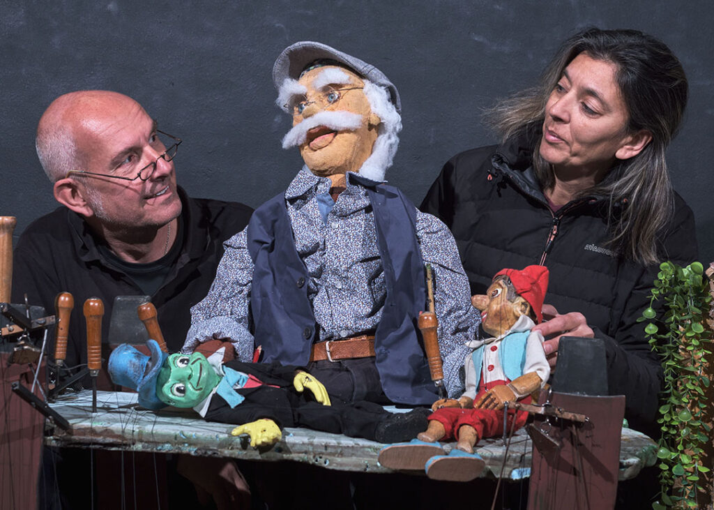 Η παράσταση είναι μία μεταφορά του κλασσικού αριστουργήματος του Κάρλο Κολλόντι σε θέατρο με διάφορα είδη κούκλας όπως μαριονέτες, γιαγαντόκουκλες, μαρόττες κλπ.