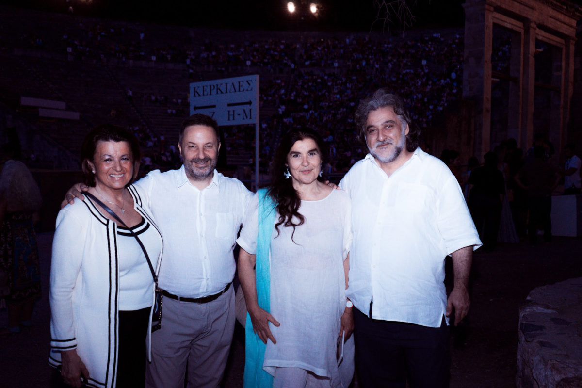 Ο Γιώργος Γλάστρας (Αγαμέμνων), ο Γιάννης Καλαβριανός (Σκηνοθέτης), η Μαρία Τσιμά (Κλυταιμήστρα / Αναπληρώτρια Καλλιτεχνική Διευθύντρια ΚΘΒΕ) και η Ανθή Ευστρατιάδου (Ιφιγένεια)