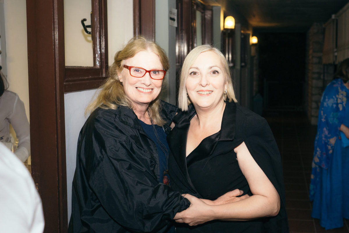 Η Ουρανία Μπασλή (Ηθοποιός) και η Μαρία Τσιμά (Κλυταιμήστρα / Αναπληρώτρια Καλλιτεχνική Διευθύντρια ΚΘΒΕ)