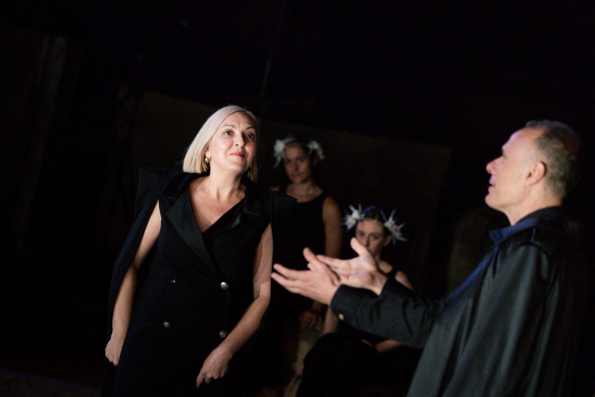Η Μαρία Τσιμά (Κλυταιμήστρα / Αναπληρώτρια Καλλιτεχνική Διευθύντρια ΚΘΒΕ) και ο Θανάσης Παπαγεωργίου (Σκηνοθέτης)