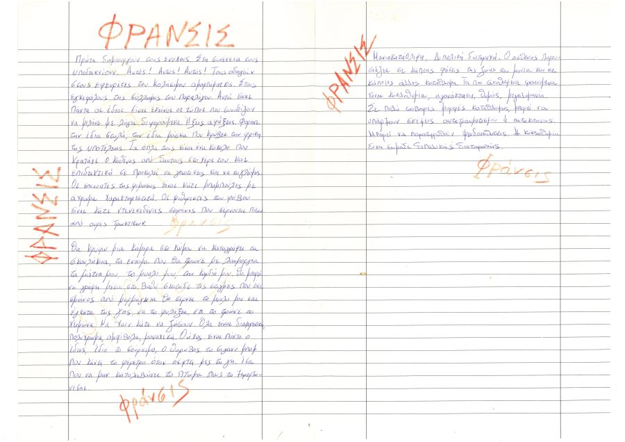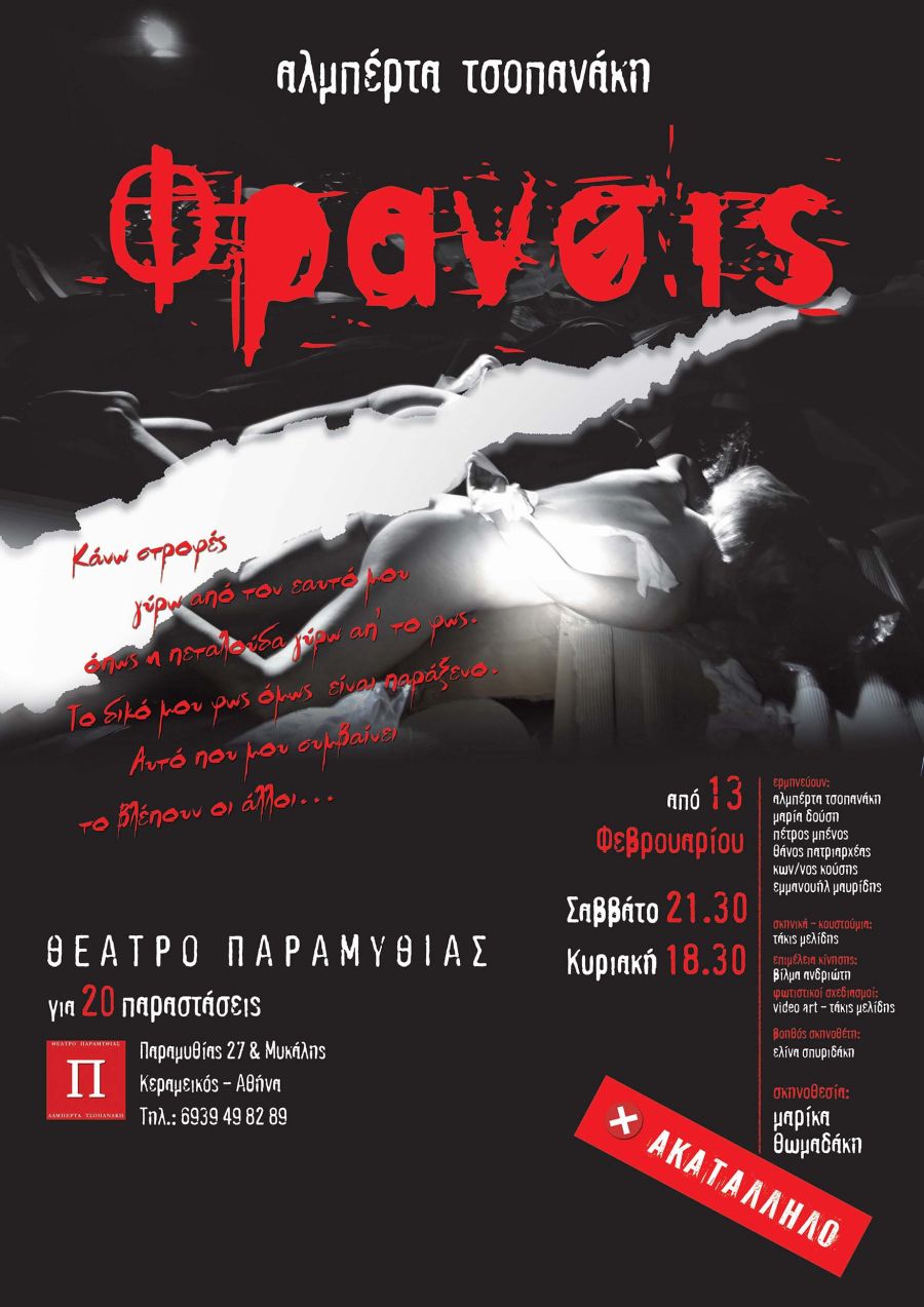 Ενώ η παράσταση του θεατρικού έργου «Φράνσις» θα παρουσιαστεί σε σκηνοθεσία Μαρίκας Θωμαδάκη, με προγραμματισμένη πρεμιέρα το Σάββατο 13 Φεβρουαρίου 2016 στις 21:30 στο θέατρο Παραμυθίας (Παραμυθίας 27 & Μυκάλης, Κεραμεικός).