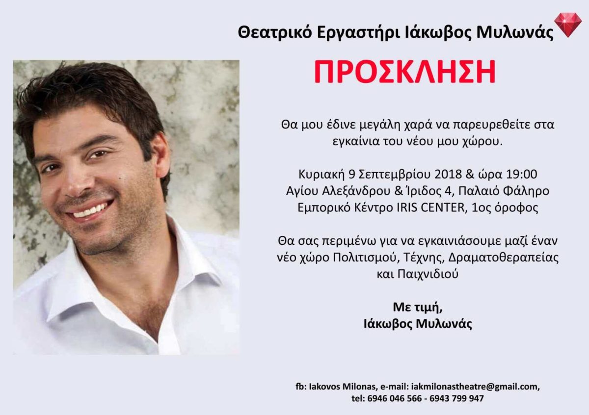Εγκαίνια Κυριακή 9 Σεπτεμβρίου 19.00!
