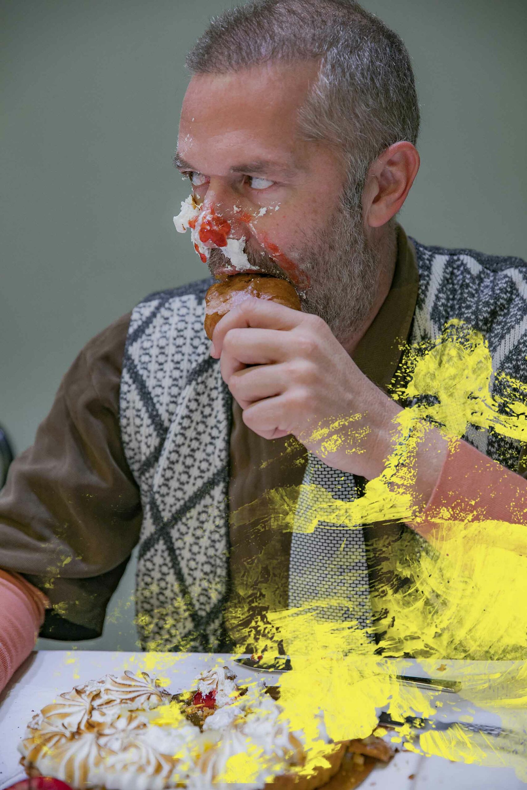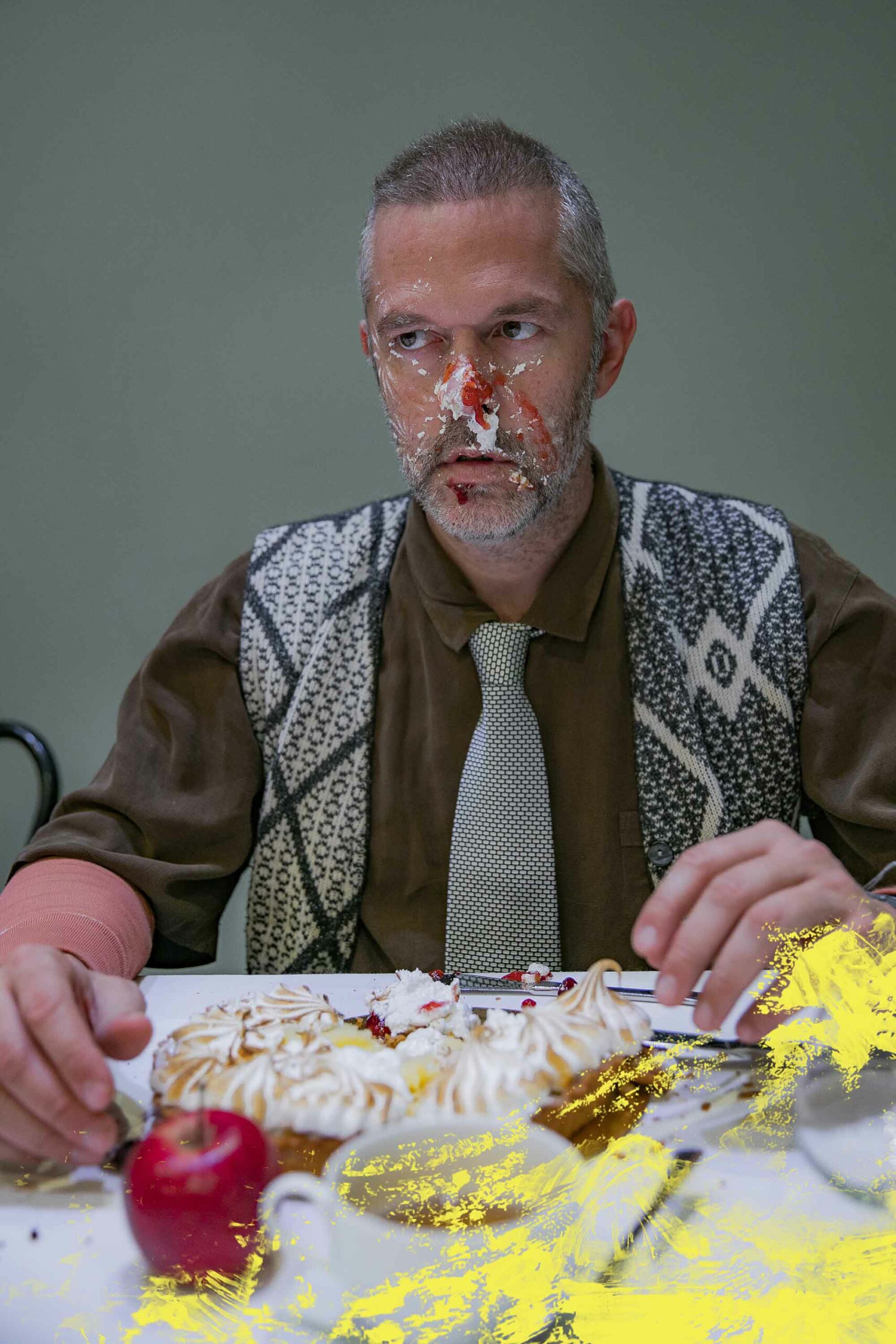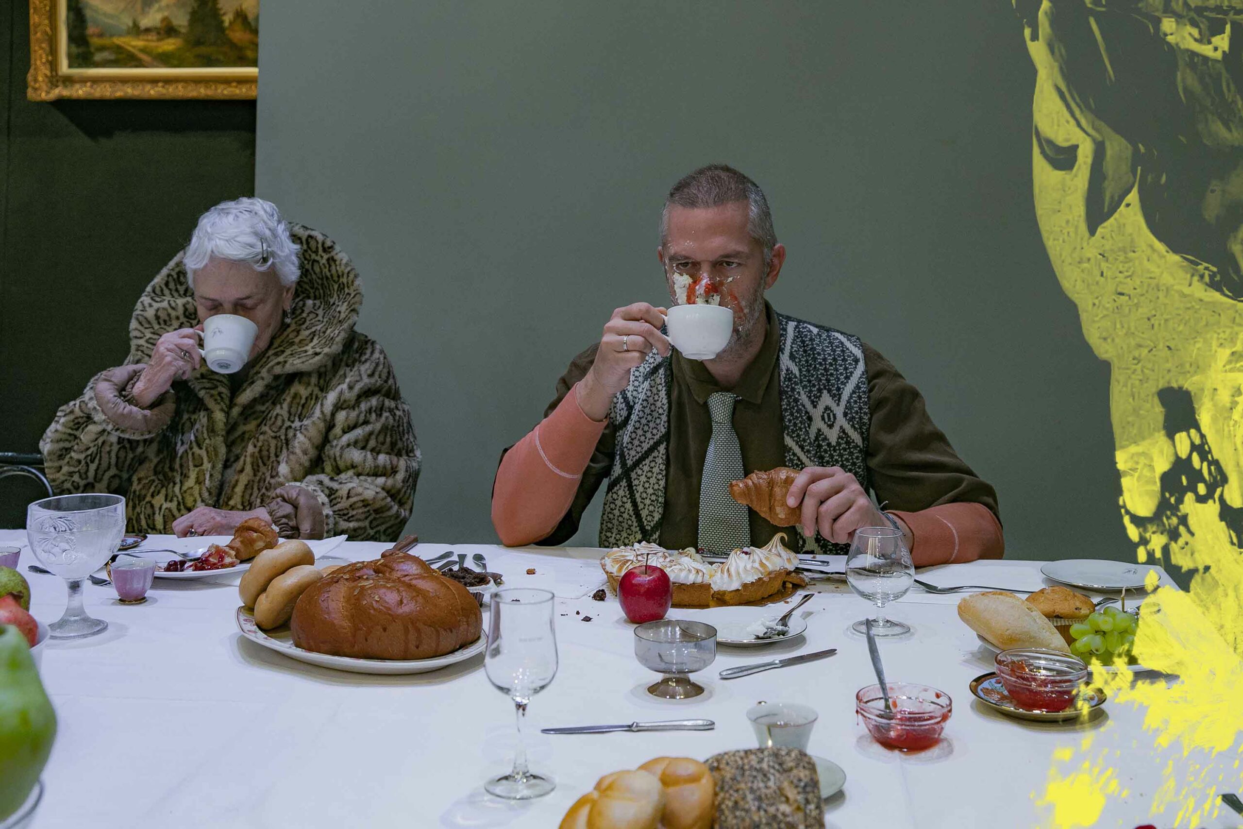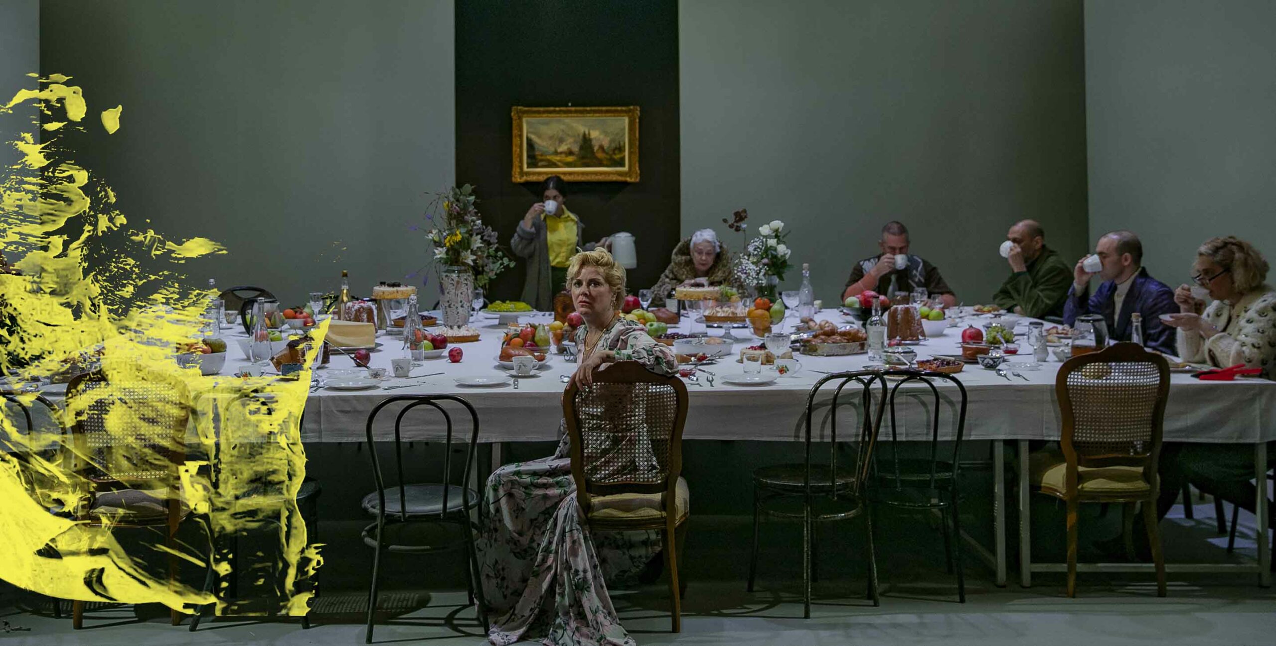 Αφορμή γι’ αυτό το ανέβασμα γίνεται ένα τραπέζι, ένας υπαρξιακός τόπος όπου τα πρόσωπα καταναγκασμένα να συνυπάρχουν ή σα ριγμένα από πάντα εκεί καλούνται να αναμετρηθούν με τη ματαίωση, τις ψευδαισθήσεις και να αποπειραθούν να συμφιλιωθούν με τη ζωή. Το τεράστιο αυτό τραπέζι ως αίθουσα πρωινού ή ως ένα παρατηρητήριο ζωής ή ως ένας τόπος που τα πρόσωπα ανεβαίνουν για να δοκιμάσουν τη διαφυγή τους από την καθημερινότητα ενώπιον των υπολοίπων “καλεσμένων”.
