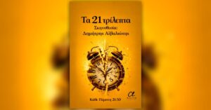 Η παράσταση «Τα 21 τρίλεπτα» παρουσιάζεται στο Θέατρο Αλκμήνη κάθε Πέμπτη στις 21:30 και αποτελεί μια σύγχρονη σκηνική σύνθεση βασισμένη στην έννοια του χρόνου.