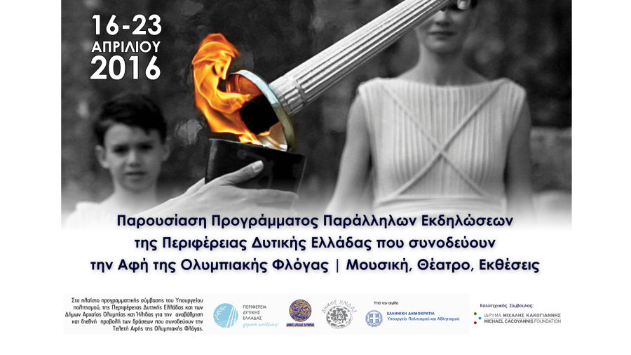Για πρώτη φορά μαζί Αφή της Ολυμπιακής Φλόγας και Πολιτισμός – Μουσική, Θέατρο και Εκθέσεις από καταξιωμένους καλλιτέχνες στις παράλληλες δράσεις της Περιφέρειας Δυτικής Ελλάδας από τις 16 έως τις 23 Απριλίου 2016