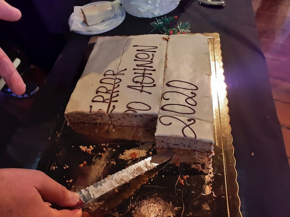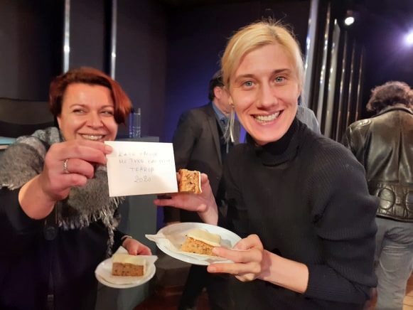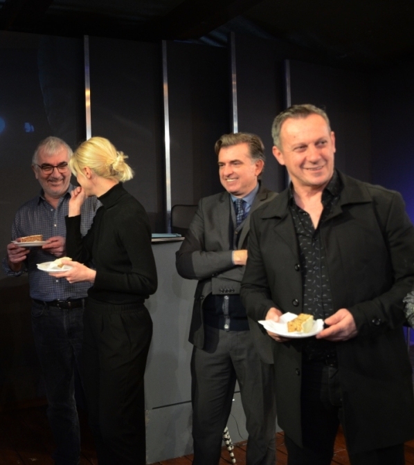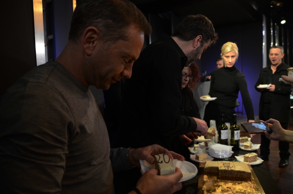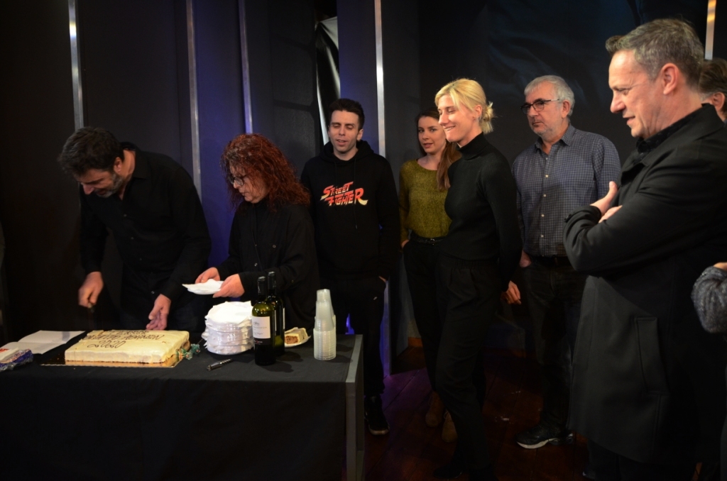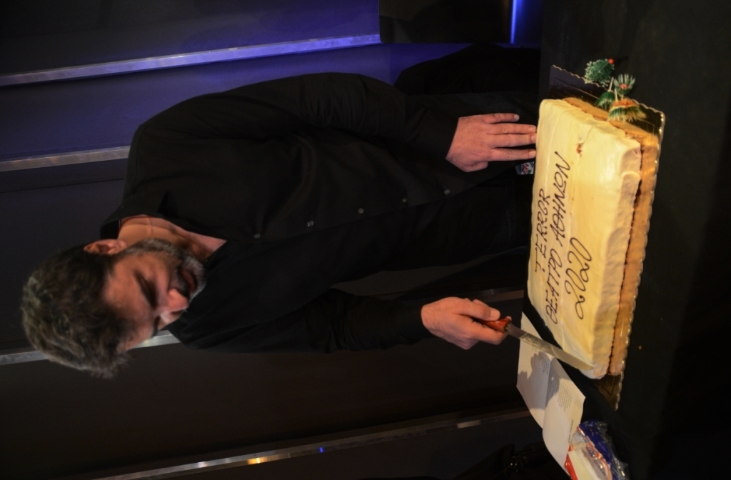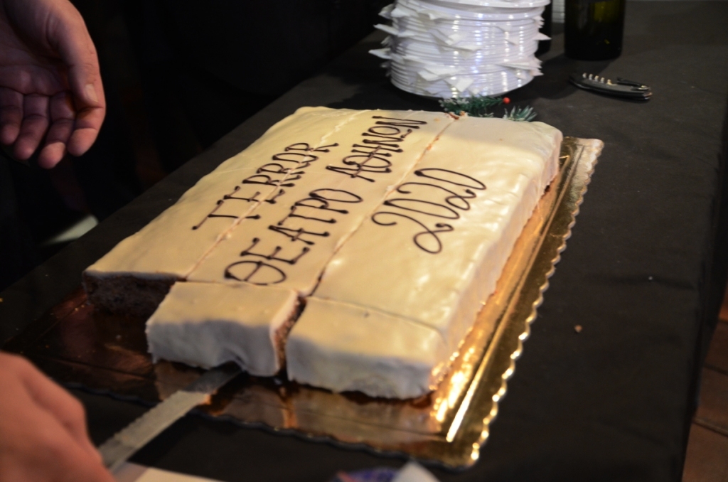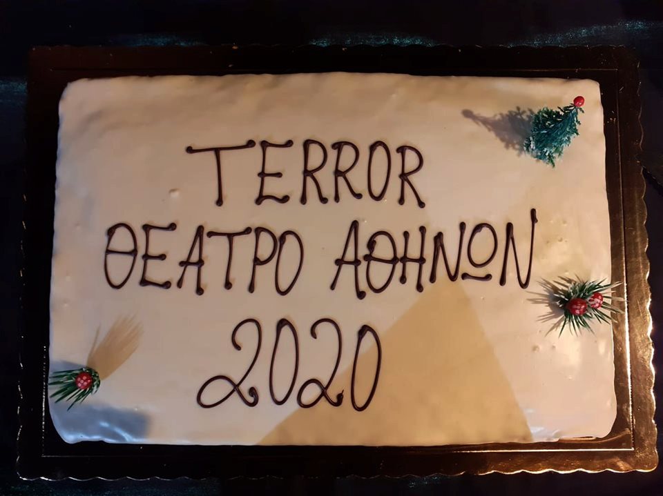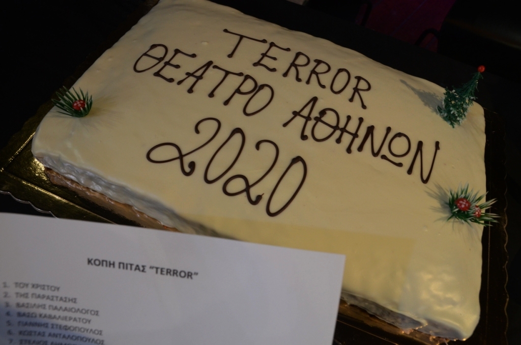 Μέσα σε κλίμα εύθυμο και γιορτινό πραγματοποιήθηκε τη Δευτέρα στο Θέατρο Αθηνών η κοπή της πρωτοχρονιάτικης πίτας για την παράσταση T E R R O R. Οι πρωταγωνιστές Κώστας Ανταλόπουλος, Στέλιος Δημόπουλος, Βάσω Καβαλιεράτου, Νάνσυ Μπούκλη, Βασίλης Παλαιολόγος και Γιάννης Στεφόπουλος του "θεατρικού φαινομένου" το οποίο έχουν ήδη παρακολουθήσει 4.000 θεατές και έχει διχάσει τη θεατρική Αθήνα ως προς την αθωότητα ή την ενοχή του κατηγορούμενου, μοιράστηκαν ευχάριστες στιγμές με τον σκηνοθέτη της παράστασης Γιώργο Οικονόμου, λίγο πριν βγουν στη σκηνή. Το φλουρί έπεσε στην ηθοποιό και "Κα Εισαγγελέα" της παράστασης Βάσω Καβαλιεράτου.